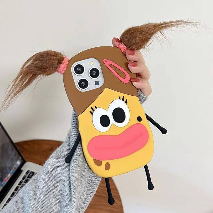 Introducing the "Cartoon Braid Girl Phone Case"! This quirky accessory boldly showcases a charmingly cartoonish girl with big eyes and a sausage-like mouth, sure to catch attention with its playful charm. Embrace the eccentricity and showcase your love for the unconventional with this distinctive accessory that celebrates individuality in the most delightful way possible.