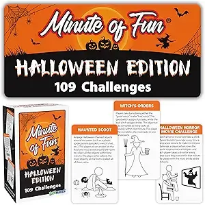 Challenge your guests with over 100 Halloween-themed Minute to Win It games and challenges with the Funwares Minute of Fun, Halloween Edition! Perfect for kids, teens, and adults, this game is packed with quick, hilarious challenges that will have everyone laughing. With 2-12 players, it's ideal for groups of all sizes and guarantees non-stop fun throughout your Halloween celebration.