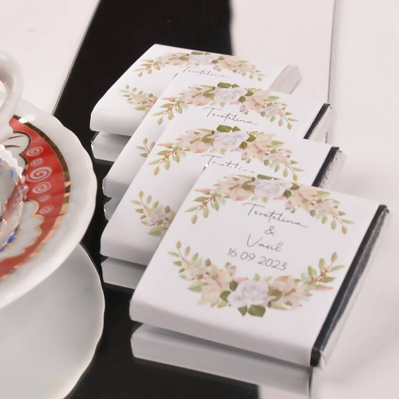 The Set of 50 Personalized Wedding Chocolate favors offers a sweet and elegant way to thank your guests on your special day. Each set includes 50 individually wrapped chocolates, customized with your unique design, making them a personalized treat that reflects your wedding theme. These custom chocolates are not only delicious but also beautifully crafted, serving as a delightful and memorable gift for your guests. Perfect for weddings, bridesmaid favors, or any special occasion, these chocolates add a touch of luxury and sweetness to your celebration, ensuring your guests leave with a lasting impression of your big day.