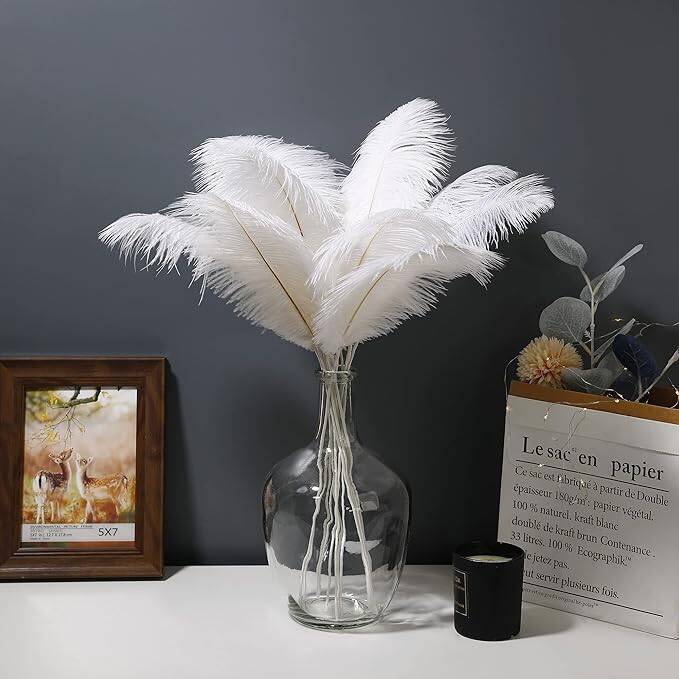 - Feather Centerpieces: Tall vases filled with ostrich feathers make for stunning centerpieces that are quintessentially 1920s. Combine these with gold beads or strings of pearls draped over the vases for added glamour.